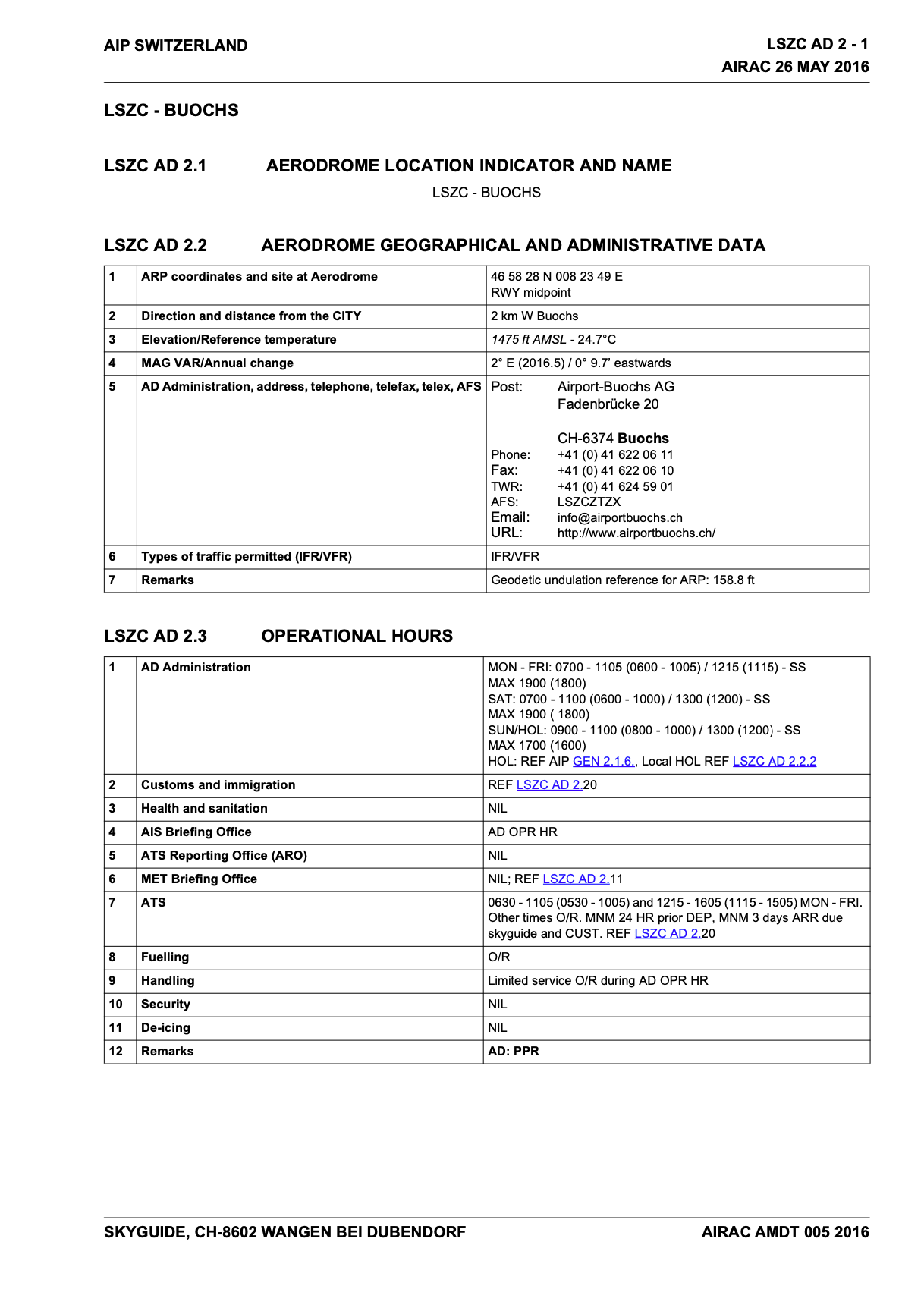| Airspace Status: | 134,130 MHz Buochs / Alpnach /Emmen Info |